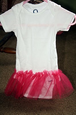 Last March as I was anxiously awaiting the arrival of Baby Addison (she’s a little over 5 months now) I was busy refashioning onesies for her. This particular one didn’t have a whole lot of umph to it just hanging on the hanger back then. Now with with our cutie to fill it, some baby legs and a puff ball it has come to life!